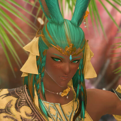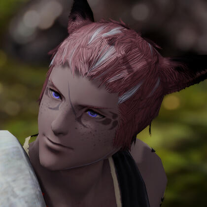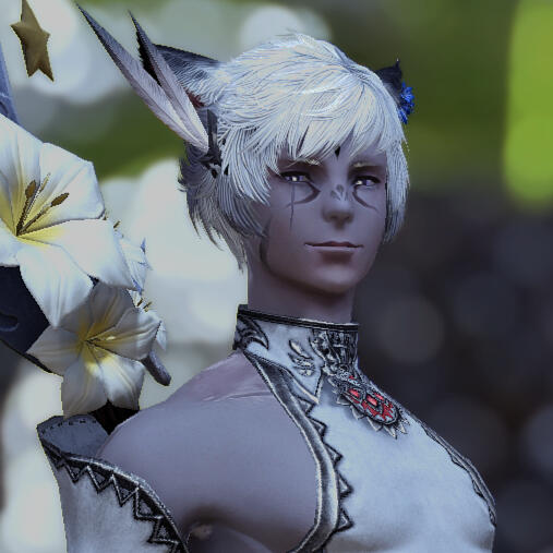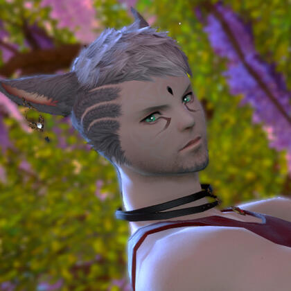 P'sahji'to was born under a different name to a particularly spiritual branch of the Bajhiri tribe that resided mostly in the northern reaches of Coerthas. After the calamity, the tribe began to migrate around the area, eventually settling in Dravania and striking up a deal with the Dravanians to trade and coexist. His mother was the tribe's leader, and known as The Oracle. Their tribe's Oracles were trained from an early age in many different forms of divination in order to discern what the tribe should do, from their crops to their settlements to their hunting and most other aspects of life. All members of the tribe were taught to speak Dravanian from an early age, due to their alliance with the dragons of Anyx Trine.Sahji'to, the younger in a set of twins, was seen as an immense boon to the Matriarch and her tribe. Naturally blessed with a strong talent for magic, he was regarded as the foretold successor to the tribe's Matriarch, and during his early life and training was treated as if he were perfect, the tribe's 'savior' and their greatest hope. Whatever he desired was handed to him without argument, any conflicts involving him were resolved by his mother or sisters, and he was barely made to even lift a finger in caring for the tribe as a whole. He never learned the survival and hunting skills that the other members of the tribe did, and grew to rely upon his twin for protection, guidance, and company. Being set on a pedestal as he was by his mother hindered his social skills, but also made him wonder if he truly fit into the space his mother wanted to cram him in. As he grew and began to mature, it would turn out that the answer was 'no'.Shortly after the Calamity, his coming-of-age ceremony was held. In this ceremony he and his twin were to receive their clan-marks, in white, as they were the Matriarch's successors. While his twin accepted hers with grace, he did not. He decided that he would take his life into his own hands, after suffering through years of growing into the wrong body and wrong role. He made his clan-marks in black, also fitting of a successor... a male successor.And a male Keeper of the Moon cannot become the Oracle of the clan.Seeing the 'incorrect' markings upon Sahji's face incited a deep rage in his mother, one that she had never felt before. All of her training, her plans, her preparations had turned to ash in an instant. The fury overwhelmed her, and as she held his 'ruined' face in her hands, her claws dug in to his flesh. If his twin hadn't come to his rescue when she did, he would have lost his eye. After repelling her and giving her a matching slice over her eye, his sister made good their escape, and together they fled south for their lives. Traveling through Coerthas to the Black Shroud, they made their new residence in the Carline Canopy of Gridania. At the young age of fifteen, the twins would learn to survive alone in the world, each others' presence the only sense of stability they'd have for a long time.Over the years, P'sahji'to would train under Stillglade Fane and learn alchemy within the Alchemist's Guild of Ul'dah. Inspired by the healers of his old home, he wished to learn how best to help and soothe other people around him. As he studied, a strange stone he'd found during his escape awakened to him, granting him even greater control over his healing and aetherial manipulation. While he had almost anything he could want, he still wished for a home that... wasn't an inn room.While walking through neighborhoods after work and dreaming of the kind of home he wanted to have, he chanced upon a family's garden in the Mists, unable to resist the desire to admire and tend to it. It had been too long since he had cared for any sort of plants. The garden's caretaker, a towering Xaela named Jacques, caught him after the third or fourth visit, but instead of being angry, he invited him into the yard once more to help. The two bonded through gardening, and eventually spent more and more time together...The rest is history.