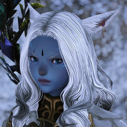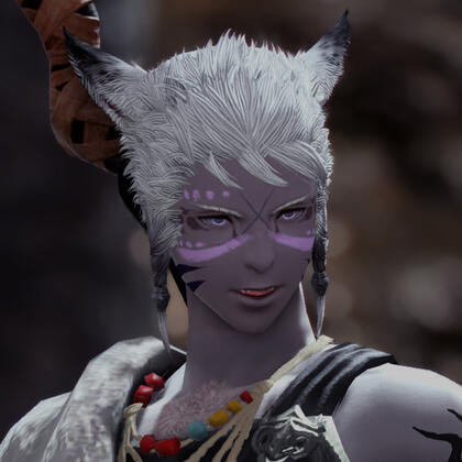 As a conjurer of Stillglade Fane and a seasoned Alchemist, P'sahji'to's specialty is healing wounds, soothing pain, and curing illnesses of all kinds. He's always happy to lend a helping hand, and can be easily found in either Gridania or Ul'dah; simply ask around for a Keeper of the Moon with ashen skin and hair of snow. He's also working to open his own clinic, with the main hurdle currently being the purchase of a building to operate from.